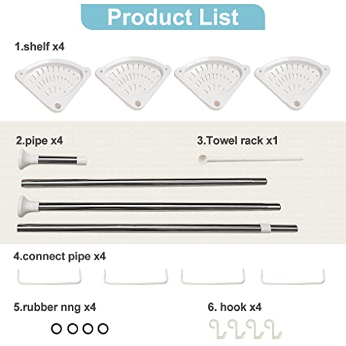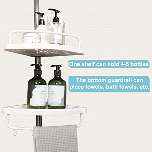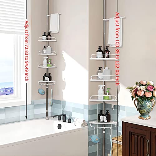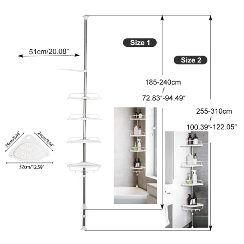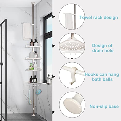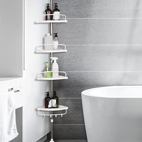 Yuanjimi - حامل أدوات استحمام يثبت في الزاوية من يوانجيمي بعمود شد مقاوم للصدأ منظم للحمام وحوض الاستحمام تخزين أكسسوارات برفوف قابلة للتعديل 4 طبقات لون عاجي