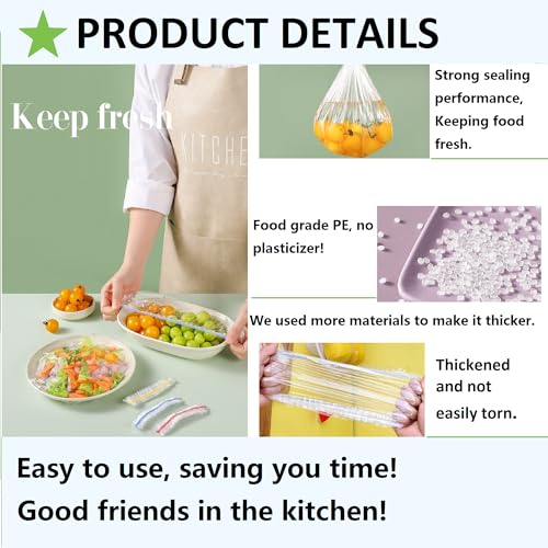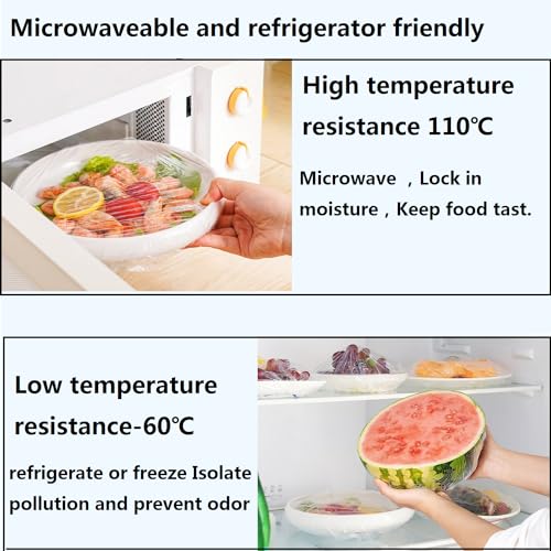 - 1. آمنة غذائيًا. أغطية تخزين الطعام المرنة مصنوعة من البولي ايثيلين الشفاف الآمن غذائيًا، بدون ملدنات، آمنة للاستخدام، سماكة ليس من السهل تشققها، قابلة لإعادة الاستخدام.