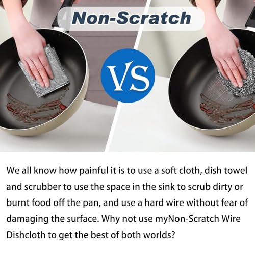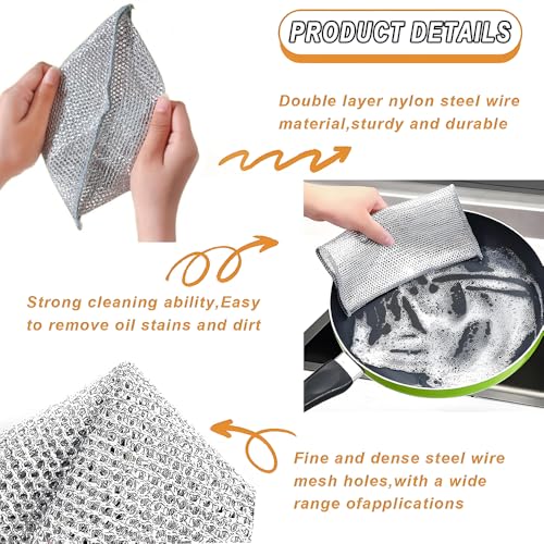 - 【قوة فرك مضادة للخدش】تعمل قطعة قماش غسيل الأطباق السلكية هذه بفاعلية على إزالة بقايا الطعام العالقة والبقع الصعبة من الحلل والمقالي والأطباق، مع الحفاظ على أواني الطهي الخاصة بك خالية تمامًا من الخدوش.