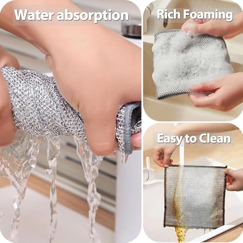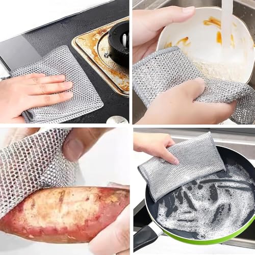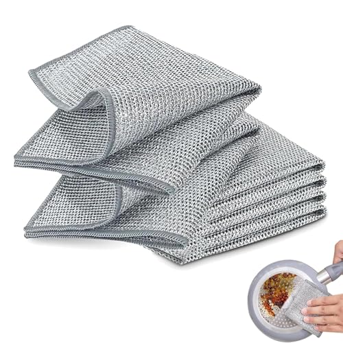 YuanYouTong - قطعة قماش سلكية متعددة الاستخدامات لغسل الأطباق من يوان يوتونج، أقمشة غسيل سلكية مزدوجة الطبقات ومقاومة للخدش، فوط تنظيف معدنية قابلة لإعادة الاستخدام للمطبخ والحوض للاستخدام الرطب والجاف، 6 قطع