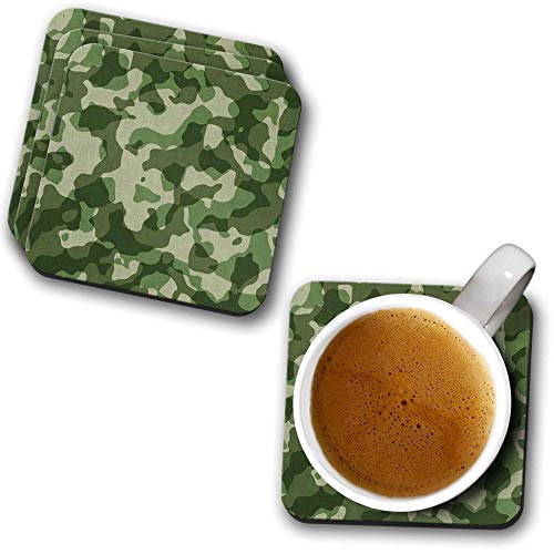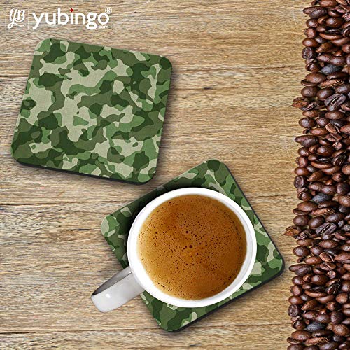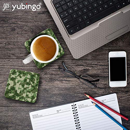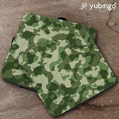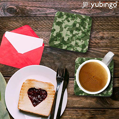 YuBingo - يوبينغو قطعة من قواعد الاكواب مطبوع عليها جيش اخضر زيتوني (خشب ام دي اف، مجموعة من 6 قطع، 9.5 × 9.5 سم، مربعة)