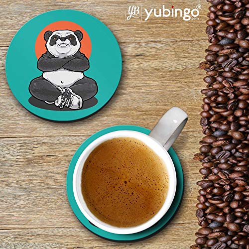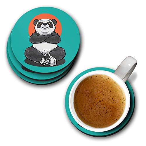 YuBingo - يوبينغو قواعد اكواب مطبوعة بتصميم باندا غاضب (خشب ليفي متوسط الكثافة، مجموعة من 6 قطع، قطر 9.5 سم، دائرية)