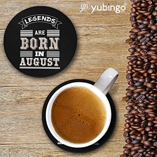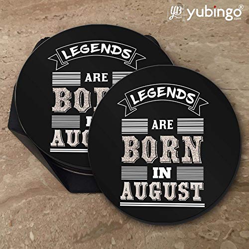 YuBingo - قاعدة أكواب دائرية من خشب ليفي متوسط الكثافة مصممة بطبعة عبارة "Legends are Born in August"، قطر 9.5 سم، مجموعة من 6 قطع
