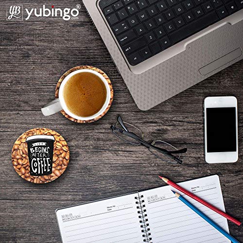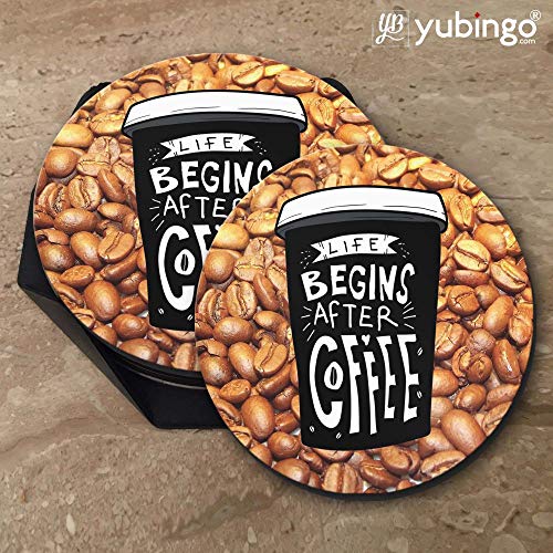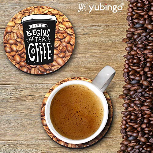 YuBingo - يوبينغو قواعد اكواب مطبوعة بعبارة Life Begins After Coffee Designer (خشب ليفي متوسط الكثافة، مجموعة من 6 قطع، قطر 9.5 سم، دائرية)
