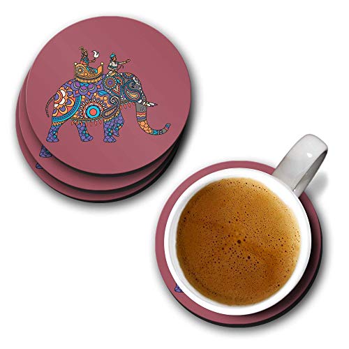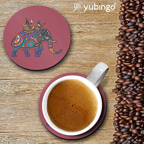 YuBingo - يوبينغو قواعد اكواب مطبوعة بتصميم فيل من موغال (خشب ليفي متوسط الكثافة، مجموعة من 6 قطع، قطر 9.5 سم، دائرية)