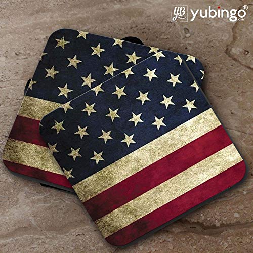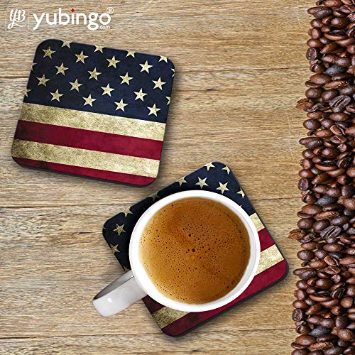 YuBingo - قواعد اكواب مطبوعة بتصميم يشير لعلم امريكا (خشب MDF، مجموعة من 6 قطع، 9.5x9.5 سم، مربعة) من يوبينغو