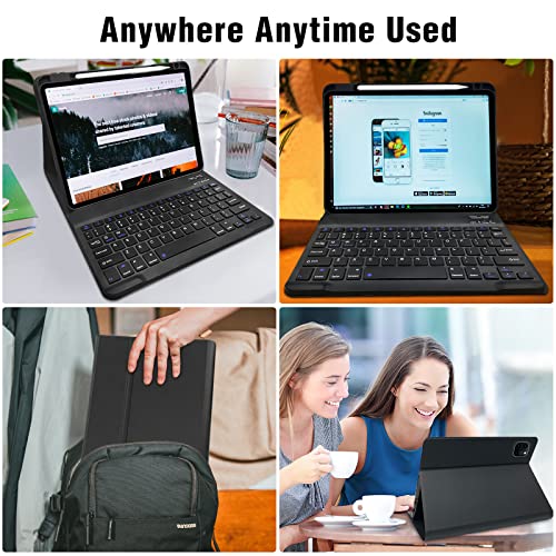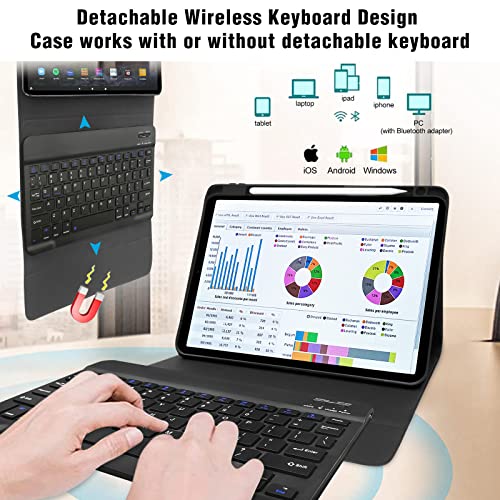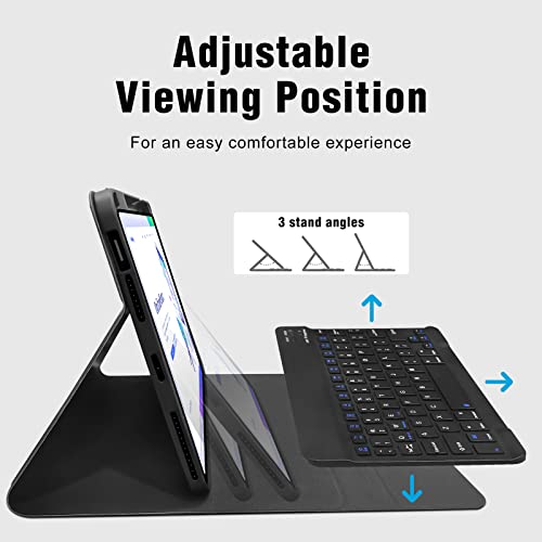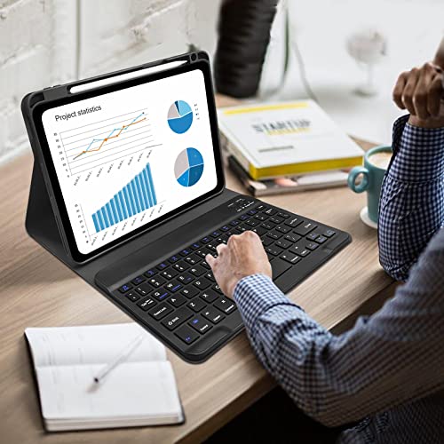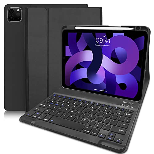 YUEJIDZ - جراب حماية للوحة المفاتيح لآي باد آير 5 2022/آي باد آير 4 2020/آي باد برو 11، جراب جلدي مع لوحة مفاتيح بلوتوث لاسلكية رفيعة قابلة للفصل لآي باد آير 10.9 بوصة، برو 11 2021/2020/2018، أسود من يويجيدز