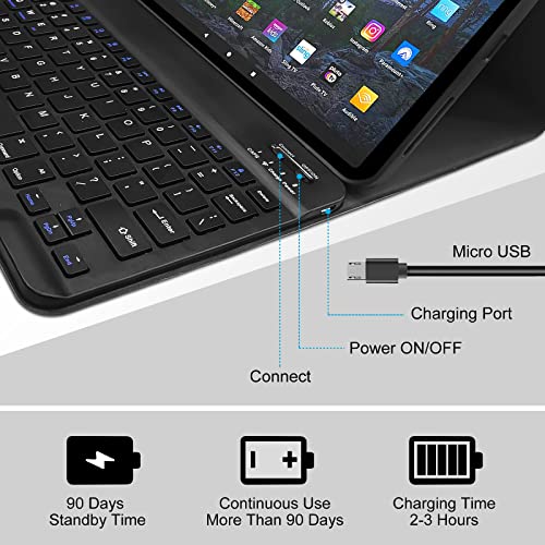 - 🔋 عمر بطارية طويل - لوحة مفاتيح بلوتوث مدمجة ببطارية ليثيوم أيون ممتازة مع وضع توفير الطاقة، مما يوفر ما لا يقل عن 72 ساعة من وقت العمل المستمر و30 يومًا من وقت الاستعداد عند الشحن الكامل. (تذكير: اشحن الكيبورد لـ 2-3 ساعات قبل الاستخدام لأول مرة.