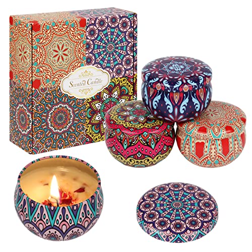 Yuepin - مجموعة شموع صويا معطرة للعلاج العطري في المنزل برائحة اللافندر للنساء، شموع برائحة اللافندر والورد للاستحمام واليوجا وعيد الشكر والكريسماس وهدايا عيد الحب وعيد ميلاد الأم من يوبين، 4 قطع