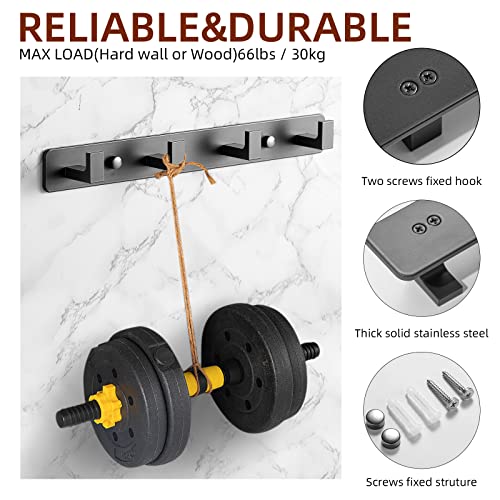 YUET - يويت 4 خطافات باب لتعليق المعاطف والمناشف والحمام تثبت على الحائط في ثابت او خطاف روب - حامل شديد التحمل للتعليق - من الستانلس ستيل غرفة النوم المطبخ للملابس والقبعات رمادي 45.0 رطل 45.0