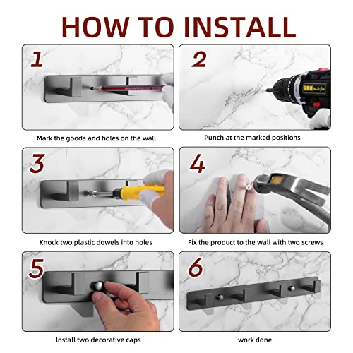- رف المعاطف الجداري مع 4 خطافات سوداء لتعليق المعاطف والملابس والقبعات والمناشف والجاكيتات وحقيبة الظهر والرداء والمدخل والحمامات وغرفة النوم وما إلى ذلك.