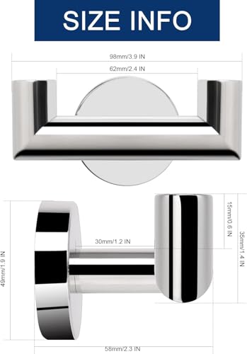 - مرجع المقاس والجسم خفيف الوزن: أبعاد خطافات المناشف هذه هي 3.78 انش - 2.24 انش - 1.96 انش (96 ملم - 57 ملم - 50 ملم). خفيفة الوزن وسهلة الاستخدام. إذا كان لديك أي مشاكل تتعلق بالتركيب أو المنتج، فلا تتردد في الاتصال بنا من خلال أمازون.