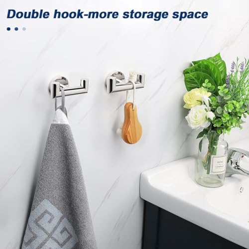 YUET - يويت خطافات باب مزدوجة للحمامات مرآة كروم للمطبخ والحمام خطاف معطف من الستانلس ستيل SUS304 حامل مناشف شديد التحمل لتعليق المناشف والمعاطف والاسفنج والملابس يثبت على الحائط عبوتان
