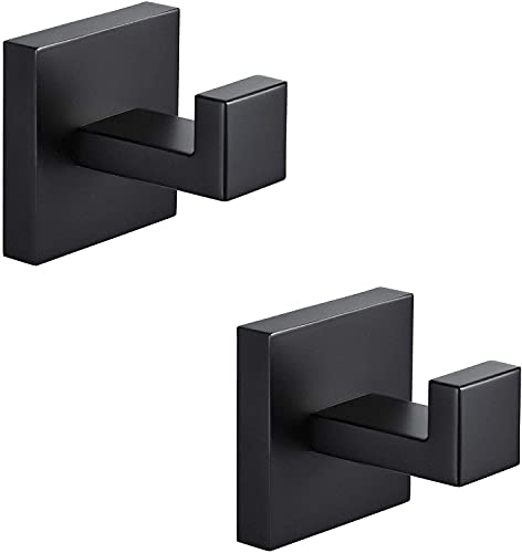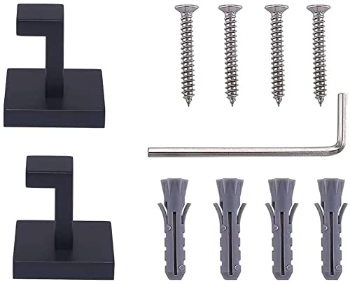 YUET - خطافات فوط للحمامات والملابس والدواليب والإسفنج والروب، خطافات معدنية تثبت على الحائط بمسمار للحمام والمطبخ والفندق والجراج من الفولاذ المقاوم للصدأ من يويت، عبوة من 2 قطعة، لمسة نهائية بلون (أسود)