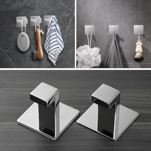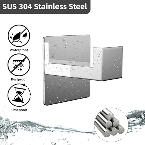 - 【أنيقة ومتينة】: مصنوعة من الستانلس ستيل SUS 304 عالي الجودة، خطافات المناشف الخاصة بنا مصممة لتدوم طويلاً. يتناسب التصميم المربع الحديث مع البراغي المخفية بشكل جيد مع أي ديكور حمام.