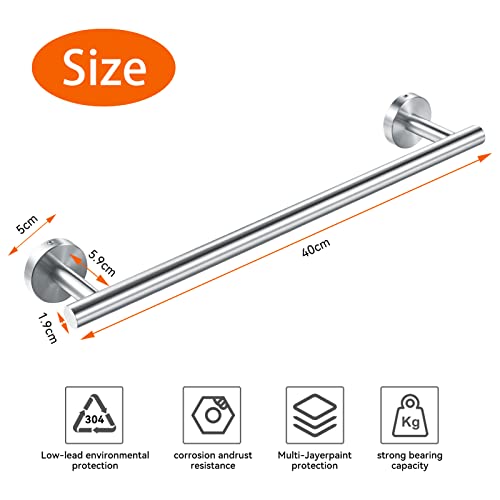 YUET - يويت حامل مناشف 40 سم بلمسة نهائية مصقولة، حامل مناشف اليد، حامل حمام للحمامات والمطبخ، شماعات ملابس من الستانلس ستيل 304 مقاوم للصدا يثبت على الحائط 16 انش