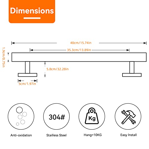- الأبعاد: الطول الكلي 9 انش (230 ملم). طول مساحة التعليق 6.6 انش (170 ملم). الإسقاط 3.1 انش (80 ملم). يمكن استخدام حامل المناشف هذا في المطابخ والحمامات وغرف الغسيل، ويمكنك تثبيته على جانبي الخزانة أو باب الخزانة لتخزين مناشف اليد والأطباق عند الاستخدام.