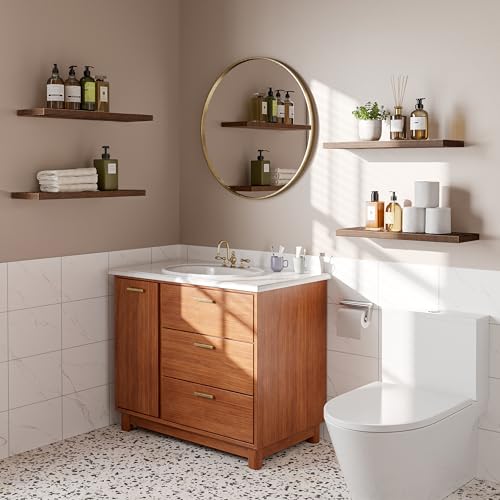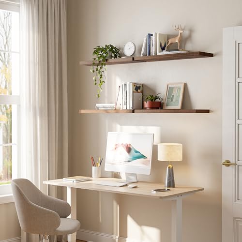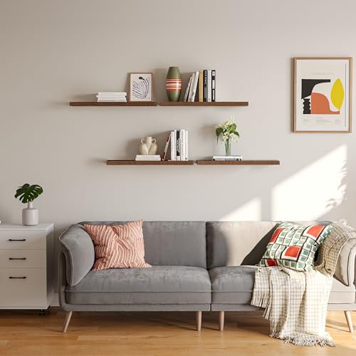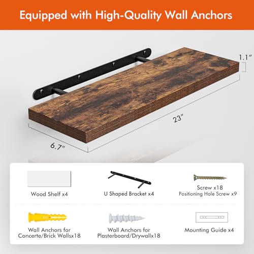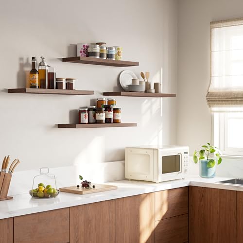 YUFLINX - أرفف عائمة تثبت على الحائط مصنوعة من الخشب بتصميم ريفي مناسبة لديكور الغرفة والتخزين وأغراض العرض، مكتبة معلقة على الحائط لغرفة النوم والحمام والمعيشة والمطبخ من يوفلينكس، 58 سم، بني، مجموعة من 4 قطع