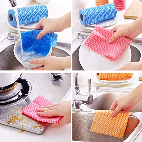 Generic - بكرة قماش تنظيف قابلة لإعادة الاستخدام أو للاستعمال مرة واحدة، فوط أطباق ورقية للمطبخ من واي يو اي بي، أحمر وبرتقالي وأزرق وأخضر، 4 بكرات، 200 قطعة
