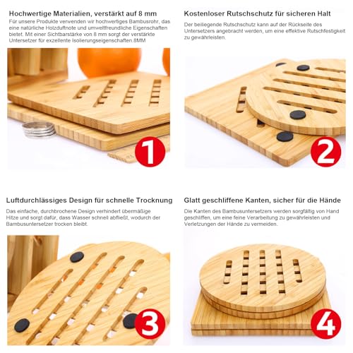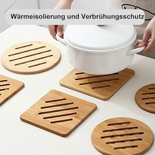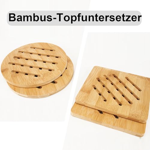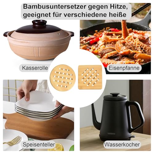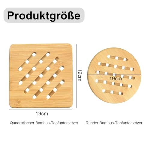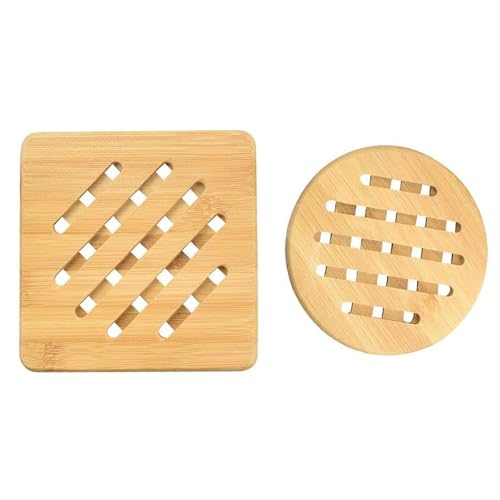 Yuiturt - مجموعة حوامل من الخيزران من يويتورت، مقاومة للحرارة وقابلة للغسل، مجموعة من قطعتين (19 سم) مربعة ودائرية، مثالية للمطبخ، حامل خشبي متعدد الاستخدامات للقلايات والحلل والأواني الفخارية