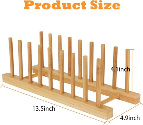 - محتويات العبوة: ستحصل على 4 حوامل من الخشب المصنوع من الخيزران، كل حامل بحجم 34.29 طول × 12.4 عرض × 10.4 ارتفاع (سم)، ويمكن لكل حامل استيعاب 8 فتحات للأطباق أو أغطية القدور، وتبلغ المسافة بين الفتحات 3 سم. مصنوعة من الخيزران الطبيعي، مما يضمن المتانة ولمسة نهائية ناعمة وتصميم صغير الحجم