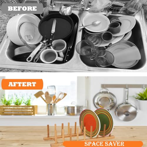 Yuixoseu - حامل تجفيف أطباق من الخيزران،، منظم وحامل أطباق، أغطية القدور، الأوعية، الأكواب، ألواح التقطيع، والكتب، 4 قطع، من يوكسوس