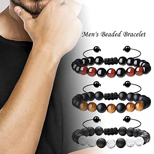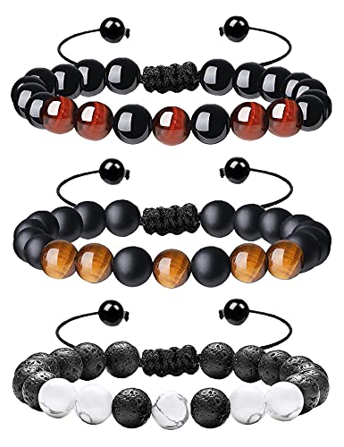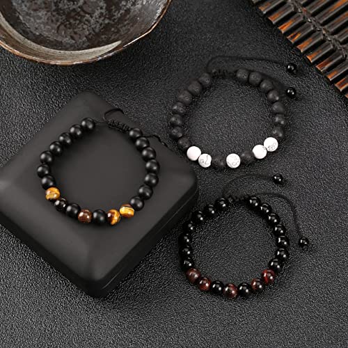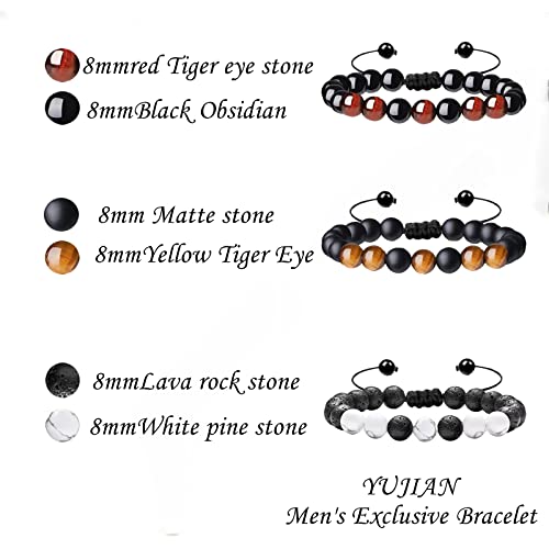 YUJIAN - سوار خرز مصنوع يدويا من حجر عين النمر 8 ملم للرجال يوجيان كريستال علاجي موزع زيوت عطرية قابل للتعديل للتخلص القلق مناسب كهدية 3 قطع