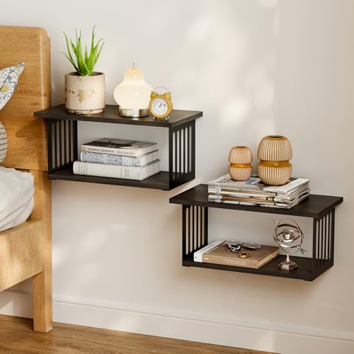 YUJSBHJAN - رف يثبت على الحائط مع دعامات معدن للتخزين على الحائط مناسب لغرفة المعيشة والمطبخ والمدخل وغرفة النوم وديكور الحائط من YUJSBHJAN، الأبعاد: 40 سم طول × 20 سم عرض × 16 سم ارتفاع، أسود