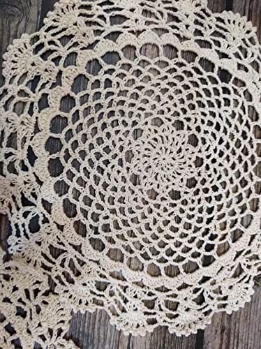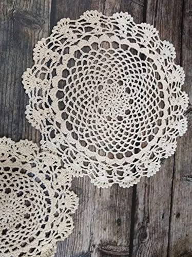 Yulakes - طقم من 2 مفارش كروشيه قطنية مصنوعة يدويًا من الدانتيل من ييولكس، قواعد أكواب، مفارش من الدانتيل، مفرش طاولة كروشيه، حصيرة شاي كروشيه، حصيرة مقلاة، 20 سم/30 سم، بيج