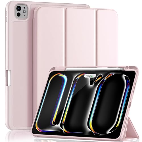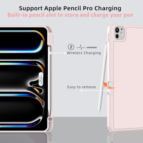 Yuloigan - جراب حماية ذكي رفيع متوافق مع جهاز اي باد برو M4 11 بوصة 2024 مع حامل قلم بنسل مدمج، جراب حماية ذكي رفيع يدعم شحن قلم بنسل برو، جراب لجهاز اي باد برو 11 الجيل الخامس من يولويجان، لون وردي