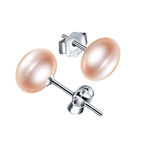 Yumilok - حلق مصنوع من الفضة الاسترلينية 925 ومرصع بلالئ مياه عذبة بلون ارجواني وابيض وفضي 8 ملم للبنات والسيدات يوميلوك عرق اللؤلؤ للنساء