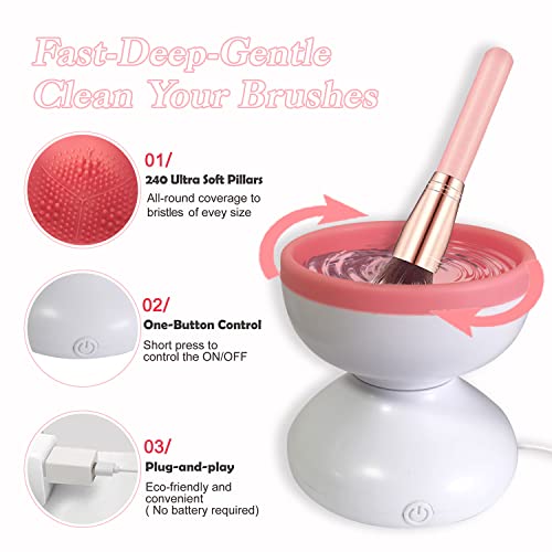 - فرش تنظيف أعمق ولطيف: تحتوي غسالة فرش المكياج على 240 رأس تنظيف من السيليكون فائق النعومة بأقطار وارتفاعات مختلفة، لضمان تغطية شاملة للشعيرات من جميع الأحجام عند دوران الغسالة، ولن تضر فرش المكياج.