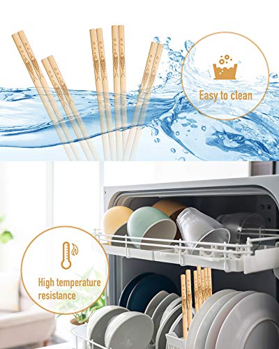 YUNDUOJIA - عيدان طعام قابلة لإعادة الاستخدام، مصنوعة من خيزران طبيعي بتصميم صحي وتقليدي، آمنة للتنظيف في غسالة الأطباق من يون دو جيا، 25 سم، بنمط: أكثر من كل سنة، 5 قطع