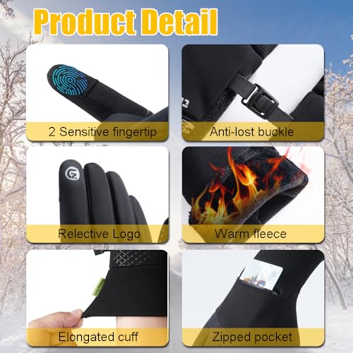 Yunkevivo - قفازات شتوية للرجال والنساء، قفازات مقاومة للماء، قفازات تعمل باللمس، قفازات ثلج حرارية للجري وركوب الدراجات والقيادة من يونكيفيفو