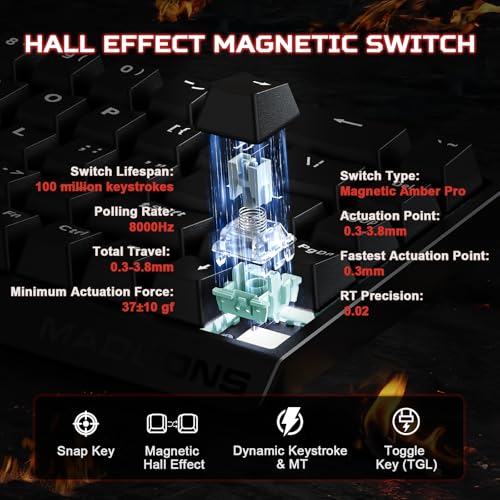 - لوحة مفاتيح مغناطيسية فائقة السرعة بتأثير هول - MAD68 HE هي لوحة مفاتيح حديثة ذات تأثير هول مصممة للاعبين الذين يحتاجون إلى السرعة والدقة. مع مفاتيح مغناطيسية خطية ووقت استجابة سريع يبلغ 0.125 مللي ثانية ومعدل أخذ عينات 8K، تضمن لوحة المفاتيح المغناطيسية هذه التسجيل الفوري للضغطات. بدقة 0.02 ملم وتقنية الزناد السريع، فإنه يوفر استجابة غير مسبوقة، مثالية للألعاب التنافسية (ملاحظة: هذا المنتج غير متوافق مع جهاز PS4 وPS5).