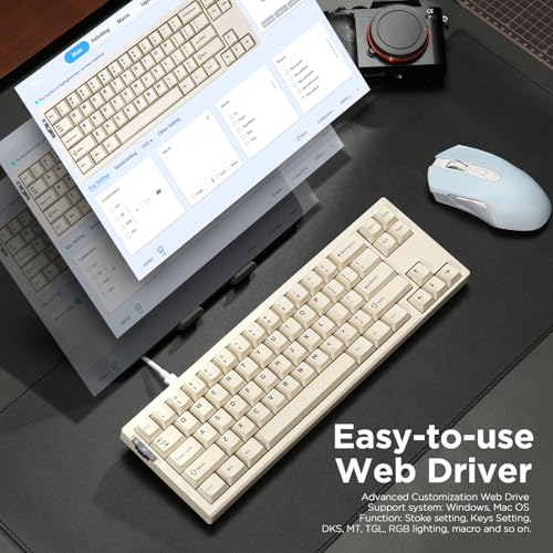 YUNZII - لوحة مفاتيح ألعاب RT68 رابيد تريجر بتاثير هول مغناطيسية سلكية من 68 مفتاحا بإضاءة الفضاء اللوني قابلة للتبديل السريع، كيبورد ميكانيكية بدون لوحة مفتاح عددية قابلة للتعديل بأزرار اوتيمو، بيج من يونزيل