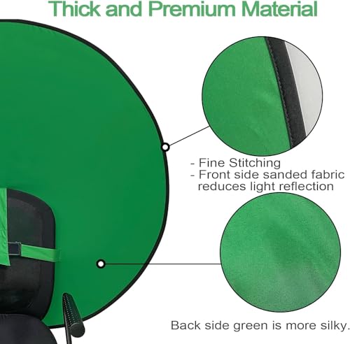 - 【مادة فاخرة】تستخدم الخلفية الخضراء يوكو قماش ممتاز أكثر سمكًا يمكن أن يقلل بشكل كبير من انعكاس الضوء. نحن نستخدم مادة البوليستر لصنع حافة تغطية الإطار. هذه المادة المرنة للغاية تلتف حول إطار لوحة الخلفية جيدًا، وتتحمل التمدد المتكرر دون أن تتقطع بسهولة. تضمن هذه الميزة أيضًا عدم تجعد المنتج عند طيه وليس ضيقًا عند تمديده