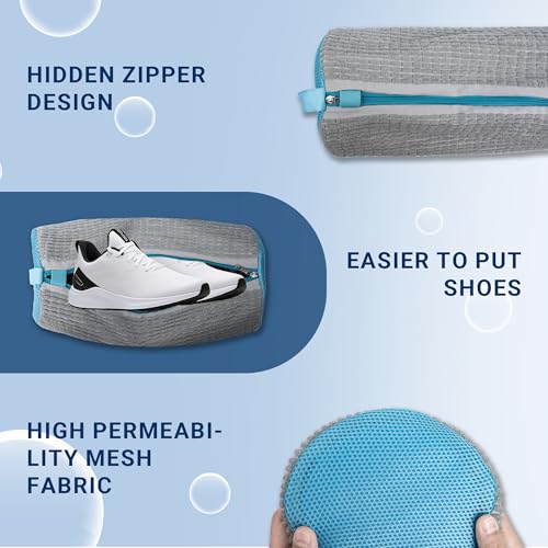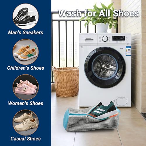 Yuoyar - يويار شنطة غسيل الاحذية من الالياف المنفوشة للغسالة والمجفف، شنطة احذية قابلة للتعديل للغسالة من قطعتين (رمادي وازرق)