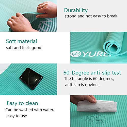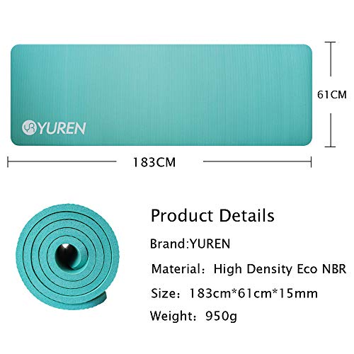 YUREN - سجادة لتمارين اليوجا سميكة وناعمة من فوم ان بي ار خالية من الفثالات مع شنطة من يورين - 1.5 سم