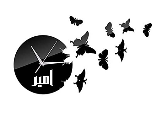 Yusuf Art - ساعة خشب محفور عليها اسم امير من يوسف ارت