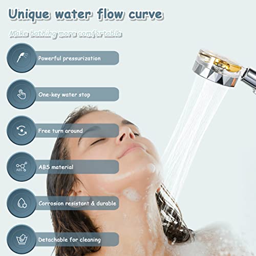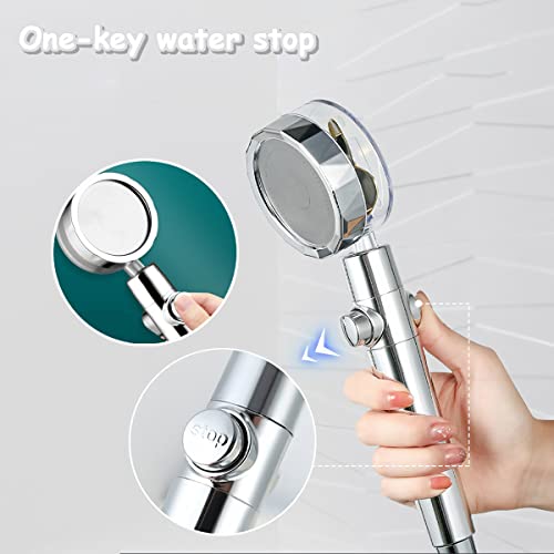YUTOU - رأس دش يدوي دوار 360 درجة عالي الضغط موفر للمياه مع مروحة ضغط عالي لزيادة الضغط مع مروحة ومفتاح ايقاف من يوتو