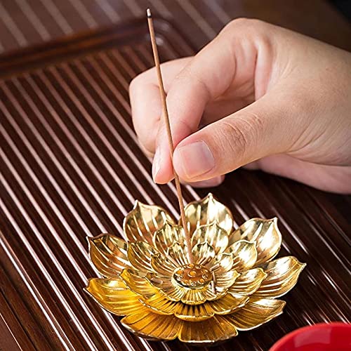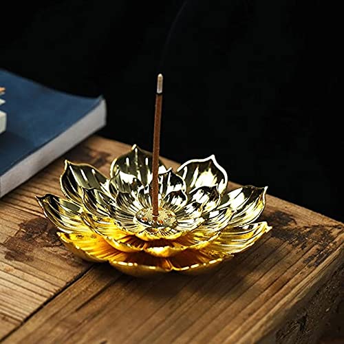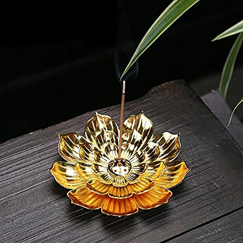 YUTRD - مبخرة من خليط معدني لحمل عيدان البخور على شكل زهرة اللوتس بقاعدة لولبية من خشب الصندل مناسبة كديكور للمنزل أو صالات اليوجا من يوترد بي)