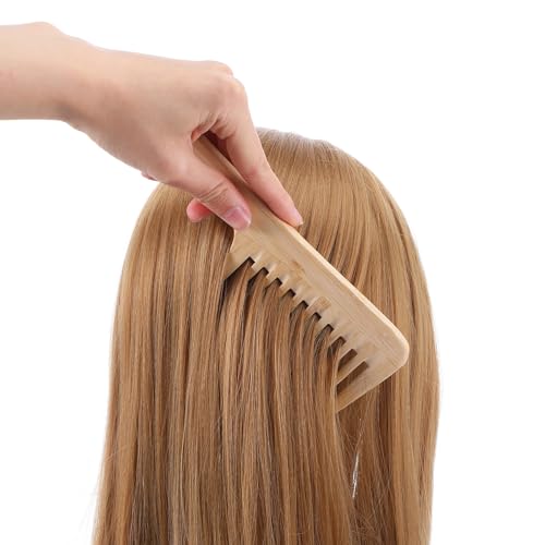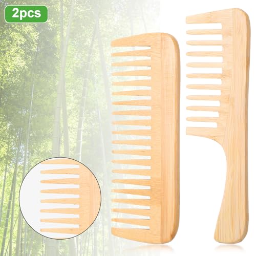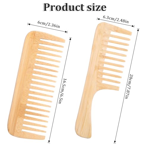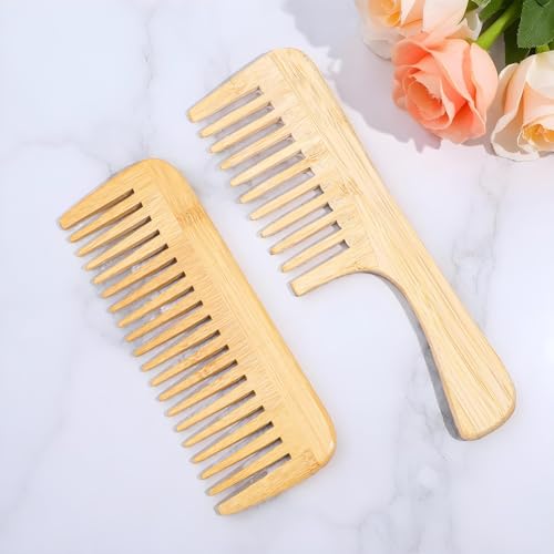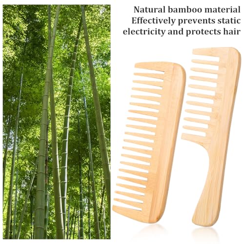 YUXIANLB - مشط بامبو مضاد للكهرباء الساكنة بأسنان عريضة، مجموعة من قطعتين تتكون من مشك كبير لفك تشابك الشعر ومشط خشبي صغير بأسنان كبيرة للشعر المستقيم والمجعد والجاف والرطب من يوكسيانلب