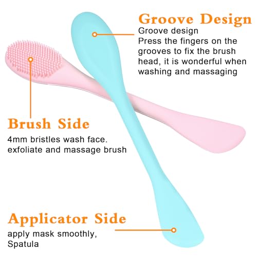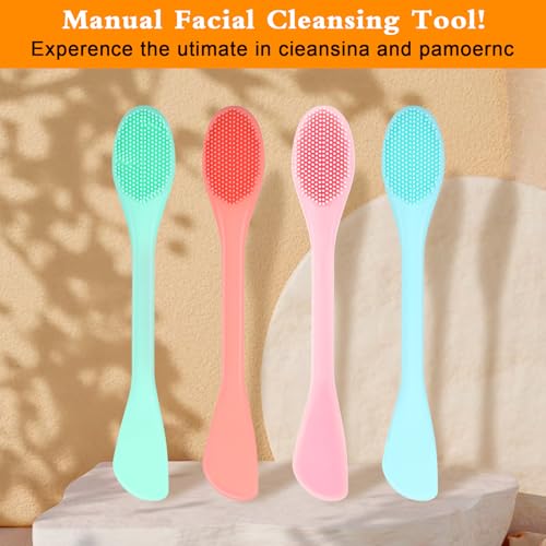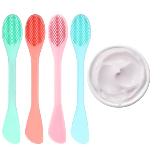 YUXIANLB - فرشاة تنظيف الوجه من السيليكون، فرشاة قناع الوجه قابلة لاعادة الاستخدام 2 في 1، اداة تنظيف الوجه مزدوجة الجوانب للمكياج والعناية بالبشرة ووضع الطين ولوشن الجسم وصنع القناع بنفسك من YUXIANLB، من 4 قطع