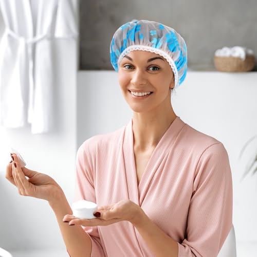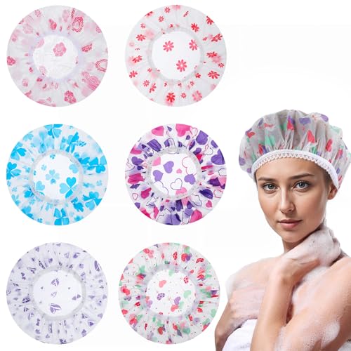 YUXIANLB - طاقية استحمام كبيرة للنساء قابلة لإعادة الاستخدام ومقاومة للماء، اكسسوارات استحمام لا تحتاج إلى الشطف، بونيه استحمام بشريط مطاطي للرجال والنساء والصالونات والمنتجعات الصحية من YUXIANLB، (عبوة 6 قطع)