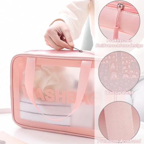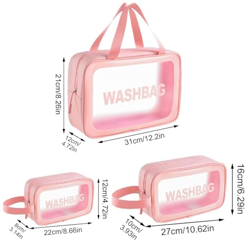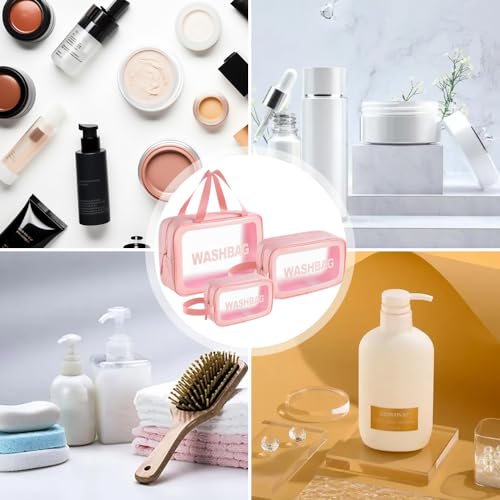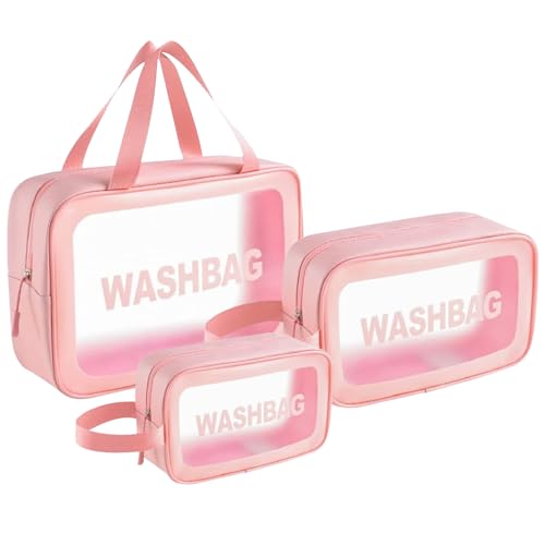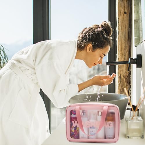 YWKJDDM - شنطة ادوات تجميل شفافة عبوة من 3 قطع مستحضرات مع مقبض حمل مقاومة للماء للرجال والنساء يوكجدم زهري