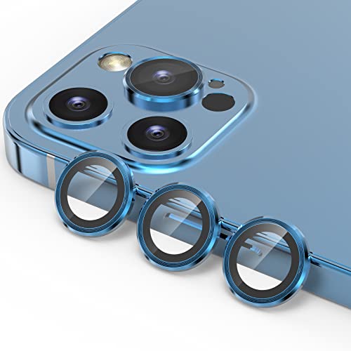 YWXTW - واقي عدسة كاميرا متوافق مع موبايل آيفون 12 برو ماكس 6.7 بوصة، واقي دائري للكاميرا من خليط معدني من الألومنيوم والزجاج المقوى مع صينية تركيب من واي دبليو اكس تي دبليو (لون أزرق باسيفيك - مجموعة واحدة)