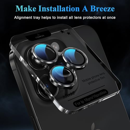 YWXTW - واقي عدسة الكاميرا لموبايل آيفون 16 برو/آيفون 16 برو ماكس بتركيب بخطوة واحدة، واقي شاشة معدني من الزجاج المقوى متوافق مع جراب الحماية من واي دبليو اكس تي دبليو (أسود تيتانيوم)