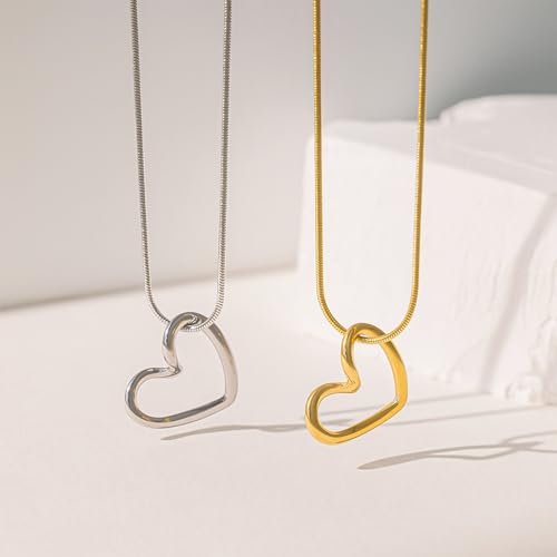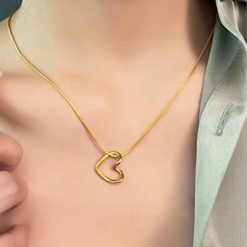 YXHOPELY - عقد ذهبي / فضي للنساء من واي اكس هوبيلي، عقد بقلادة على شكل قلب بتصميم مقطوع على شكل قلب وعظم ثعبان، قلادة فريدة من نوعها على شكل قلب وفاخر، قلادة خفيفة وفاخرة على شكل قلب وعظم ثعبان