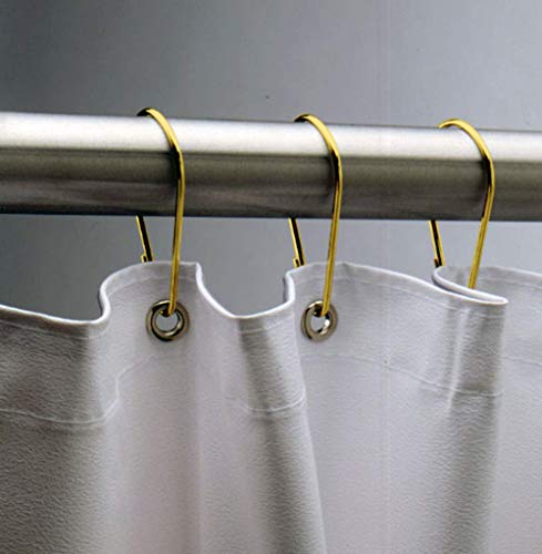 YXQ - خطافات تعليق ستائر الدش من النحاس المقاوم للصدا مطلية بالنيكل اللامع من واي اكس كيو، دبابيس صِنارة للستائر (24 قطعة) - لون ذهبي